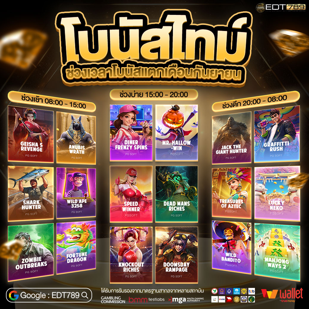 ที่น่าสนใจคือ EDT789 มีโปรโมชั่นและโบนัสมากมายสำหรับสมาชิกทั้งเก่าและใหม่ เช่น โบนัสต้อนรับสำหรับสมาชิกใหม่ โบนัสเติมเงิน และคืนยอดเสียรายสัปดาห์ ทำให้ผู้เล่นมีโอกาสทำกำไรได้มากขึ้น